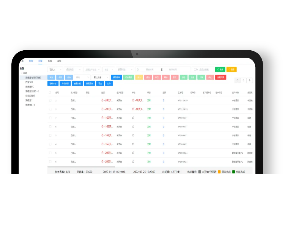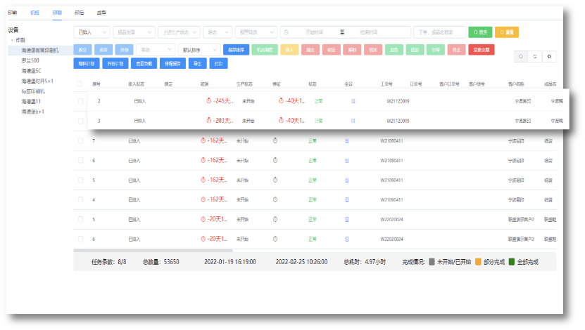 4.支持各個(gè)機(jī)臺根據(jù)交貨時(shí)間,印色,幅面等條件進(jìn)行自動排序,同時(shí)也可進(jìn)行手動拖拉;